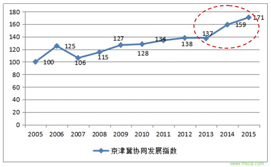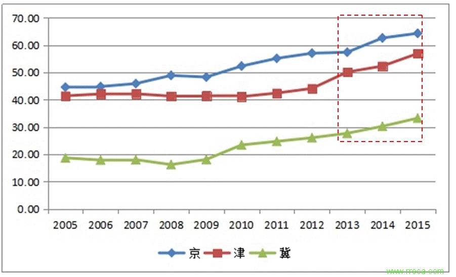 中國社會科學院工業(yè)經(jīng)濟研究所課題組發(fā)布的《京津冀協(xié)同發(fā)展指數(shù)報告》顯示,2005-2015年京津冀協(xié)同發(fā)展指數(shù)總體呈現(xiàn)上升趨勢,特別是2013年以后指數(shù)上升幅度更大(見圖1)。而共享發(fā)展指數(shù)和綠色發(fā)展指數(shù)是推動京津冀協(xié)同發(fā)展指數(shù)上升的主要力量,協(xié)調(diào)發(fā)展指數(shù)對京津冀協(xié)同發(fā)展指數(shù)的提高也起了重要的作用,相比之下,創(chuàng)新發(fā)展指數(shù)和開放發(fā)展指數(shù)的作用較小。同時,“京津冀協(xié)同發(fā)展戰(zhàn)略的實施進展與階段成效”問卷調(diào)查結(jié)果表明,接近六成的受訪者對京津冀協(xié)同發(fā)展的成效“點贊”,超過九成的受訪者認為北京非首都功能疏解已取得進展。可見,無論是京津冀協(xié)同發(fā)展指數(shù)變化還是調(diào)查問卷的結(jié)果都表明,京津冀協(xié)同發(fā)展戰(zhàn)略實施取得了明顯的階段成效,京津冀地區(qū)公共服務、扶貧攻堅、教育公平等民生問題得到較大的改善。從地區(qū)綜合發(fā)展指數(shù)的變化趨勢看,北京市綜合發(fā)展指數(shù)最高,天津市次之,河北省最低,但近些年三地綜合發(fā)展指數(shù)的差距呈現(xiàn)縮小的趨勢,這種積極變化得益于京津冀協(xié)同發(fā)展戰(zhàn)略實施見效。然而,應該看到,京津冀大氣污染仍是本地區(qū)居民關(guān)注的焦點,同時也是京津冀協(xié)同發(fā)展面臨的突出問題。在1109位受訪者中,58.79%的受訪者認為京津冀空氣質(zhì)量不僅沒有改善,甚至還出現(xiàn)惡化的趨勢,只有11.18%和30.03%的受訪者分別認為空氣質(zhì)量明顯改善、季節(jié)性改善。