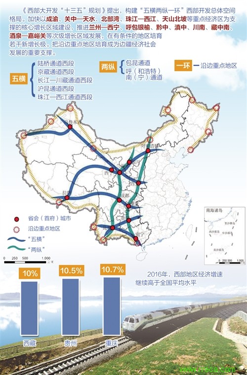數(shù)據(jù)顯示,2016年西部地區(qū)經(jīng)濟增速繼續(xù)高于全國平均水平,并且國內(nèi)經(jīng)濟增速“第一梯隊”均來自西部地區(qū),重慶、貴州、西藏的經(jīng)濟實際增速分別為10.7%、10.5%、10%,迅猛發(fā)展之勢引人關(guān)注。