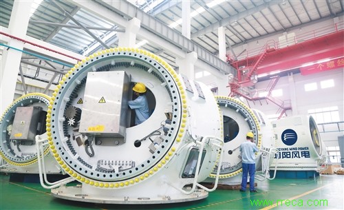 明陽風電產(chǎn)業(yè)集團有限公司已占領(lǐng)世界海上風電制高點,SCD系列風電機組是專門針對低風速、山地、海上等復雜自然環(huán)境特征的風機。(龐彩霞攝)