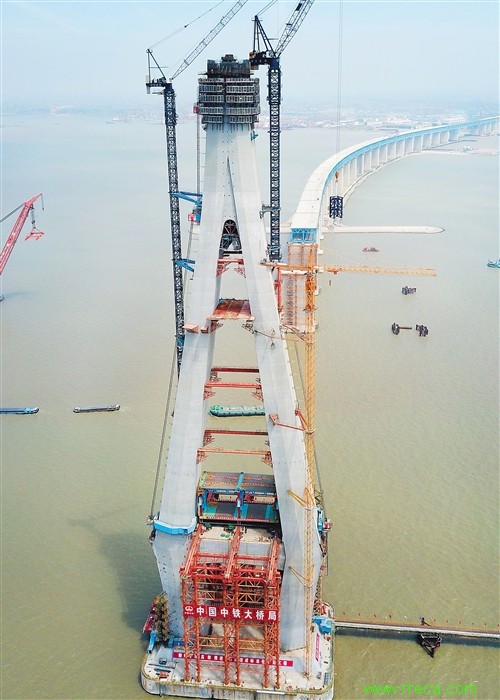 大橋建成后,將成為長三角地區(qū)沿海重要的鐵路、公路過江通道。 許叢軍攝(新華社發(fā))