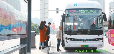 “零排放、無(wú)污染”氫能源公交車在成都市郫都區(qū)投入運(yùn)行。 劉剛鈺攝