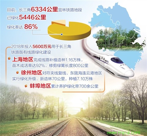 推進(jìn)長三角鐵路沿線綠化通道建設(shè),按照“連起來、厚起來、茂起來、美起來”的要求,2018年投入5600萬元用于長三角鐵路既有線路綠化建設(shè)。截至目前,長三角6334公里宜林鐵路地段已綠化5446公里,綠化率達(dá)86%,已運營鐵路綠化成果顯著