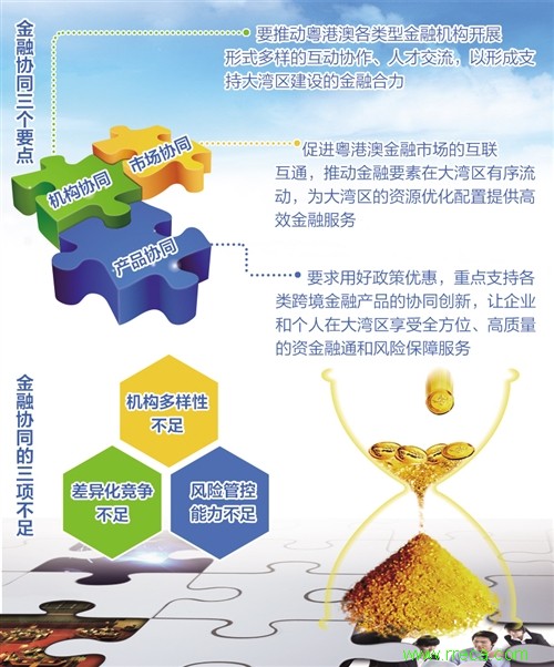 產(chǎn)品協(xié)同則要求,用好CEPA(《內(nèi)地與港澳關(guān)于建立更緊密經(jīng)貿(mào)關(guān)系的安排》)、自貿(mào)區(qū)等政策優(yōu)惠,重點(diǎn)支持各類跨境金融產(chǎn)品的協(xié)同創(chuàng)新,讓企業(yè)和個(gè)人在大灣區(qū)享受全方位、高質(zhì)量的資金融通和風(fēng)險(xiǎn)保障服務(wù)。