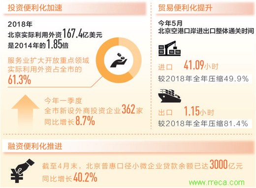2018年,北京實際利用外資167.4億美元,是2014年的1.85倍。其中,服務(wù)業(yè)擴大開放重點領(lǐng)域?qū)嶋H利用外資占全市的61.3%。今年一季度,全市新設(shè)外商投資企業(yè)362家,同比增長8.7%。