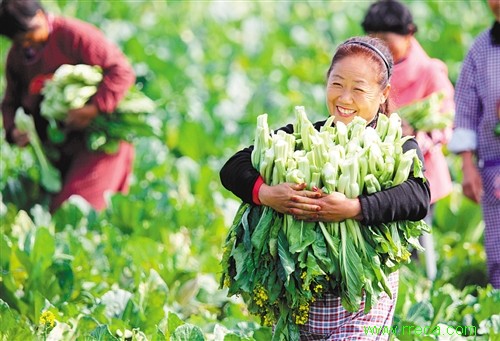 在河南天和農(nóng)業(yè)發(fā)展有限公司位于許昌市建安區(qū)小召鄉(xiāng)的蔬菜基地,附近村民忙著采收有機蔬菜。
