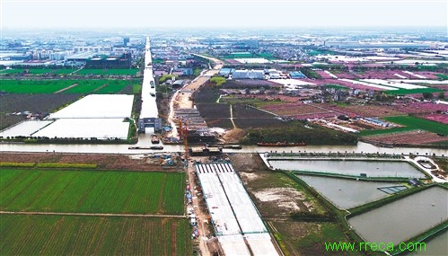 圖為連接上海市金山區(qū)與浙江省嘉善縣的葉新公路—姚楊公路項(xiàng)目施工現(xiàn)場。 新華社記者 丁 汀攝