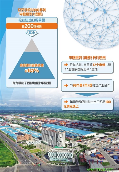 從貨源產(chǎn)生地來看,已經(jīng)開行的5000多列中歐班列(成都)拉動(dòng)進(jìn)出口貿(mào)易額超200億美元,其中超65%的貨源來自四川省,有力帶動(dòng)了西部地區(qū)的外貿(mào)發(fā)展。