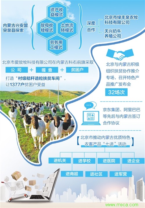 興安盟突泉縣以北京內(nèi)蒙古扶貧協(xié)作為契機,投入扶貧協(xié)作資金7165萬元,與北京市綠豐泉農(nóng)牧科技有限公司和天興奶牛養(yǎng)殖公司分別就肉牛和奶牛產(chǎn)業(yè)展開深度合作,探索出資產(chǎn)收益模式、放母收犢模式、土地流轉(zhuǎn)模式和勞務用工模式。北京市愛放牧科技有限公司在科右前旗投資2億元進行秸稈轉(zhuǎn)化,利用農(nóng)作物秸稈生產(chǎn)生物質(zhì)炭基肥等系列產(chǎn)品。采取“公司+嘎查+貧困戶”形式,打造“村級秸稈造粒扶貧車間”,實現(xiàn)“秸稈換炭肥”138噸,54個嘎查受益,累計帶動貧困戶1377戶。通遼市科左中旗與北京市順義區(qū)結(jié)對子,引導北京順鑫控股集團有限公司落戶當?shù)兀群蠼M織308名嘎查黨組織書記、致富帶頭人進京培訓,對科左中旗貧困戶開展43場種養(yǎng)技術(shù)培訓。集團所屬順鑫鑫源公司將育肥牛周轉(zhuǎn)基地建在科左中旗,直接帶動1000多名貧困人口脫貧致富。