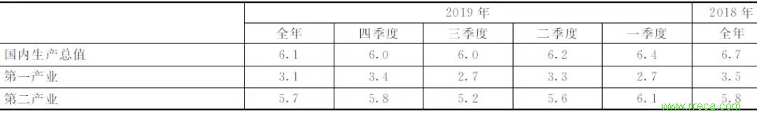 3.前三季度GDP增速逐季回落,主要是制造業(yè)增速逐季回落帶動(dòng)的。分季度看,2019年前三季度GDP增速逐季回落,四季度GDP增速與三季度持平。其中,一至四季度第一產(chǎn)業(yè)增加值分別增長(zhǎng)2.7%、3.3%、2.7%和3.4%;第二產(chǎn)業(yè)增加值分別增長(zhǎng)6.1%、5.6%、5.2%和5.8%;第三產(chǎn)業(yè)增加值分別增長(zhǎng)7.0%、7.0%、7.1%和6.6%。顯然,前三季度第一產(chǎn)業(yè)和第三產(chǎn)業(yè)增速并沒有逐季回落,只有第二產(chǎn)業(yè)增速逐季回落。可見,前三季度GDP增速逐季回落是第二產(chǎn)業(yè)增速逐季回落帶動(dòng)的。在第二產(chǎn)業(yè)中,一至四季度工業(yè)增加值分別增長(zhǎng)6.1%、5.6%、5.0%和5.9%,建筑業(yè)增加值分別增長(zhǎng)6.2%、5.1%、6.1%和5.3%(見表1)。顯然,前三季度建筑業(yè)增速也沒有逐季回落,只有工業(yè)增速逐季回落。可見,前三季度第二產(chǎn)業(yè)增速逐季回落是工業(yè)增速逐季回落帶動(dòng)的。在工業(yè)中,一至四季度制造業(yè)增速分別為6.5%、5.5%、4.8%和5.9%,前三季度增速逐季回落,且回落幅度較大,同時(shí),由于制造業(yè)增加值占工業(yè)增加值的比重較大,所以對(duì)工業(yè)增速逐季回落的影響較大。因此,前三季度GDP增速逐季回落主要是制造業(yè)增速逐季回落帶動(dòng)的。