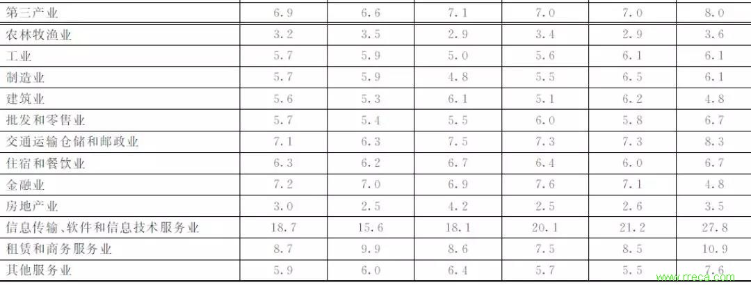 2.第三產(chǎn)業(yè)對(duì)GDP增長(zhǎng)起主要拉動(dòng)作用,但其增速回落也對(duì)GDP增速回落產(chǎn)生主要影響。2019年,第一、第二和第三產(chǎn)業(yè)增加值分別增長(zhǎng)3.1%、5.7%和6.9%,第三產(chǎn)業(yè)增加值增速最高。第一、第二和第三產(chǎn)業(yè)對(duì)GDP增長(zhǎng)的貢獻(xiàn)率分別為3.8%、36.8%和59.4%,分別拉動(dòng)GDP增長(zhǎng)0.2個(gè)、2.2個(gè)和3.6個(gè)百分點(diǎn)。第三產(chǎn)業(yè)對(duì)經(jīng)濟(jì)增長(zhǎng)的貢獻(xiàn)率近6成,對(duì)2019年GDP增長(zhǎng)起主要拉動(dòng)作用。在第三產(chǎn)業(yè)中,交通運(yùn)輸、倉儲(chǔ)和郵政業(yè),金融業(yè),信息傳輸、軟件和信息技術(shù)服務(wù)業(yè),租賃和商務(wù)服務(wù)業(yè)增加值保持較快增長(zhǎng),增速分別為7.1%、7.2%、18.7%和8.7%,領(lǐng)先于其他行業(yè),分別比第三產(chǎn)業(yè)增加值增速快0.2個(gè)、0.3個(gè)、11.8個(gè)和1.8個(gè)百分點(diǎn),對(duì)第三產(chǎn)業(yè)增加值增長(zhǎng)起主要拉動(dòng)作用(見表1)。