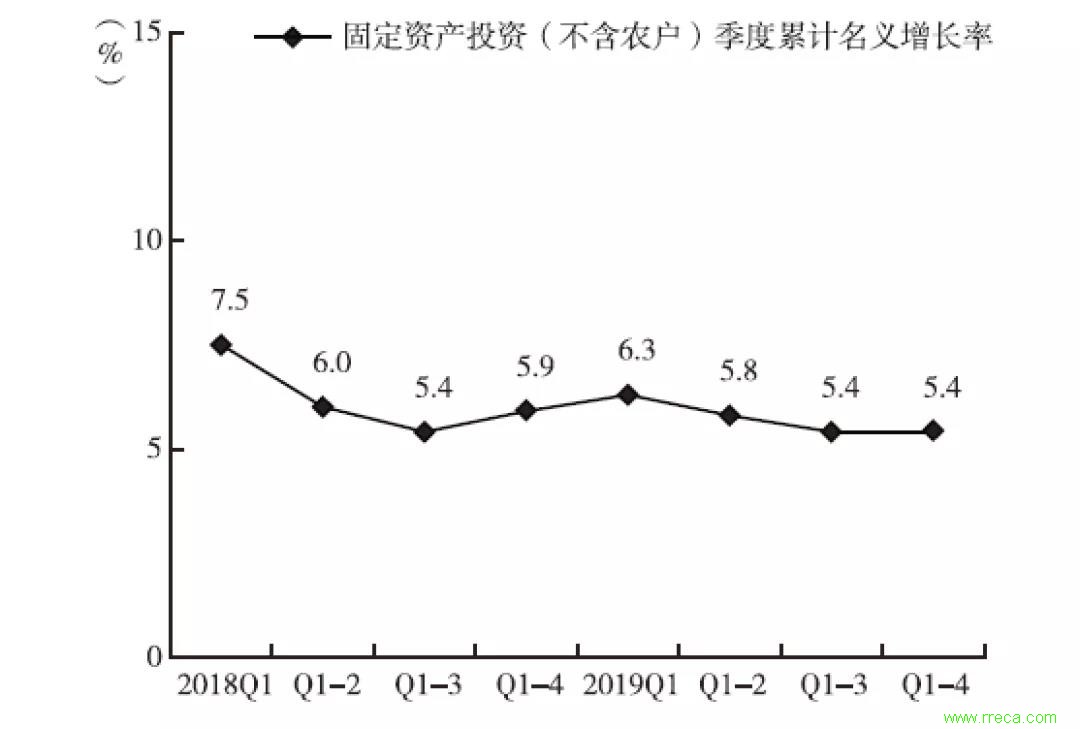 圖2 2018-2019年固定資產(chǎn)投資(不含農(nóng)戶)季度累計(jì)名義增長(zhǎng)率(%)
