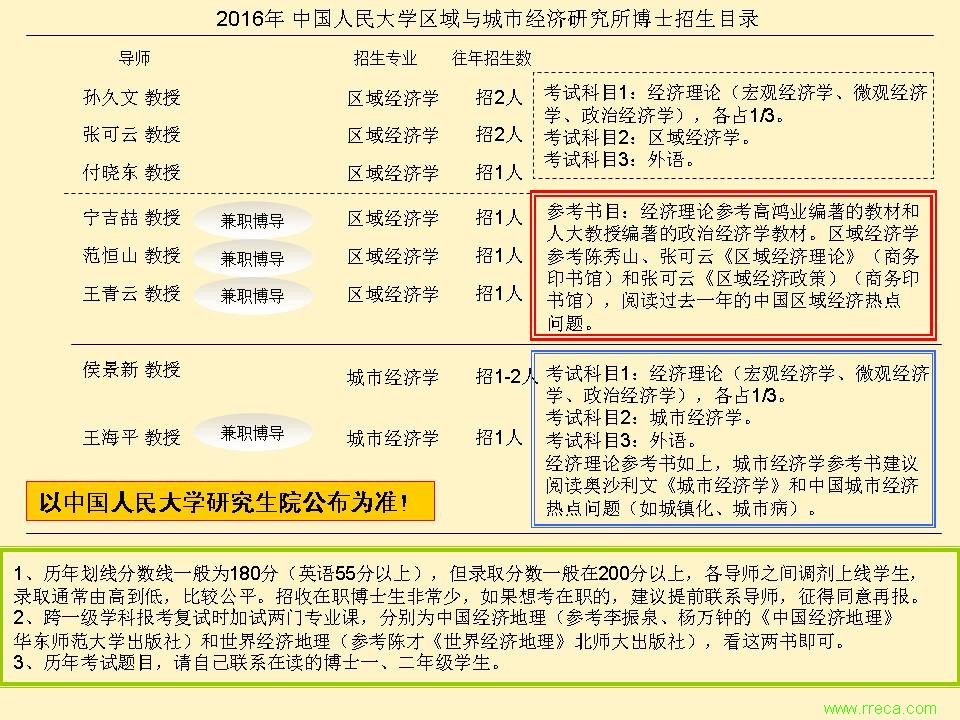 2016年中國人民大學(xué)區(qū)域經(jīng)濟(jì)學(xué)博士招生目錄
