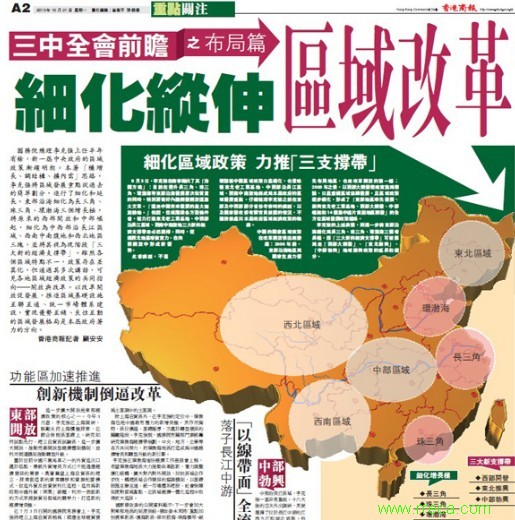 據(jù)本港媒體《香港商報(bào)》報(bào)道,國(guó)務(wù)院總理李克強(qiáng)上任半年有余,新一屆中央政府的區(qū)域政策漸趨明朗。本著“穩(wěn)增長(zhǎng)、調(diào)結(jié)構(gòu)、擴(kuò)內(nèi)需”思路,李克強(qiáng)將區(qū)域發(fā)展重點(diǎn)從過去的簡(jiǎn)單劃分,進(jìn)行了細(xì)化和延長(zhǎng)。東部沿海細(xì)化為長(zhǎng)三角、珠三角、環(huán)渤海三個(gè)增長(zhǎng)極,將原來的西部開放和中部崛起,細(xì)化為中西部沿長(zhǎng)江區(qū)域、西南中南腹地和西北地區(qū)三塊,并將其視為現(xiàn)階段“三大新的經(jīng)濟(jì)支撐帶”。