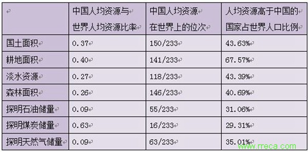 確實,中國大多數(shù)自然資源的人均占有量都低于世界人均,但這是否說明中國人口太多呢? 其實,由于世界自然資源分布極不均勻,使用世界人均來作為判定資源多寡的標準存在極大的誤導性。以森林資源為例,全球233個國家和地區(qū)中,人均占有量低于世界人均的就有158個,這些國家和地區(qū)的總人口占世界的79.43%。法國是歐洲人均自然資源比較豐富的國家,但除耕地一項外,在國土、淡水、森林、石油、煤炭和天然氣等每一項資源上的人均占有量都遠少于世界人均。德國、英國、意大利更在每一項上都是如此;甚至巴西這樣地大物博,人口并不太多的國家,其石油、煤炭和天然氣的人均占有量都要遠低于世界人均。