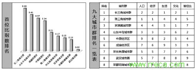 排在第一位的是長(zhǎng)三角城市群。在五個(gè)一級(jí)指數(shù)中,長(zhǎng)三角的城市生活指數(shù)排在首位,首位比指數(shù)也排在首位。相比于其他八個(gè)城市群,長(zhǎng)三角在人口、經(jīng)濟(jì)、文化和城市層級(jí)體系的發(fā)展相對(duì)比較平衡,表明在經(jīng)過30多年的磨合與一體化進(jìn)程之后,一種良好的層級(jí)體系與合理的協(xié)作機(jī)制正在生成,無論是從生活便利程度還是文教衛(wèi)生領(lǐng)域的發(fā)展水平來看,均具有極大的優(yōu)勢(shì)。長(zhǎng)三角的主要優(yōu)勢(shì)在于經(jīng)濟(jì)發(fā)達(dá),無論是經(jīng)濟(jì)總量還是人均GDP均位于全國前列。但其最大的軟肋仍是環(huán)境和可持續(xù)發(fā)展問題,其工業(yè)廢水、工業(yè)二氧化硫等的排放量在2012年仍明顯高于其他城市群。從綠色發(fā)展的角度看,明顯落后于珠三角、山東半島城市群等。