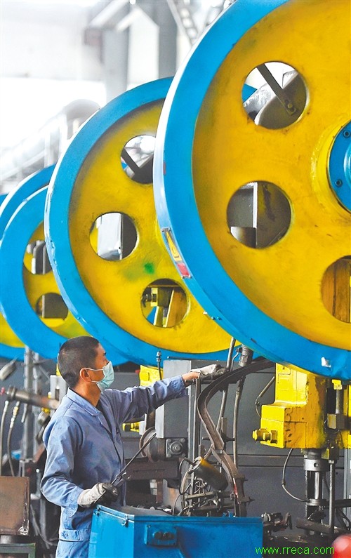 工人在位于浙江省諸暨市店口鎮(zhèn)的浙江盾安智控科技股份有限公司鍛壓車間內(nèi)操作。 新華社記者 韓傳號攝