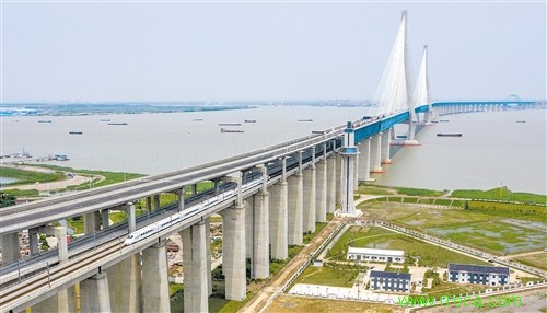 借助滬蘇通長江公鐵大橋,沿海沿江南向鐵路由“曲線”變成“直線”,由“隔江相望”變?yōu)椤翱缃诤稀保鰪?qiáng)了上海作為中心城市的輻射帶動作用,有力推動了長三角高質(zhì)量一體化發(fā)展進(jìn)程。